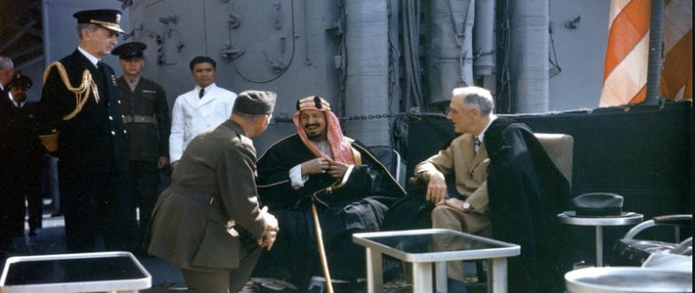 In 1945, President Franklin D. Roosevelt secured a pivotal alliance with Saudi Arabia's King Abdulaziz aboard the USS Quincy. The goal: ensure U.S. energy security.