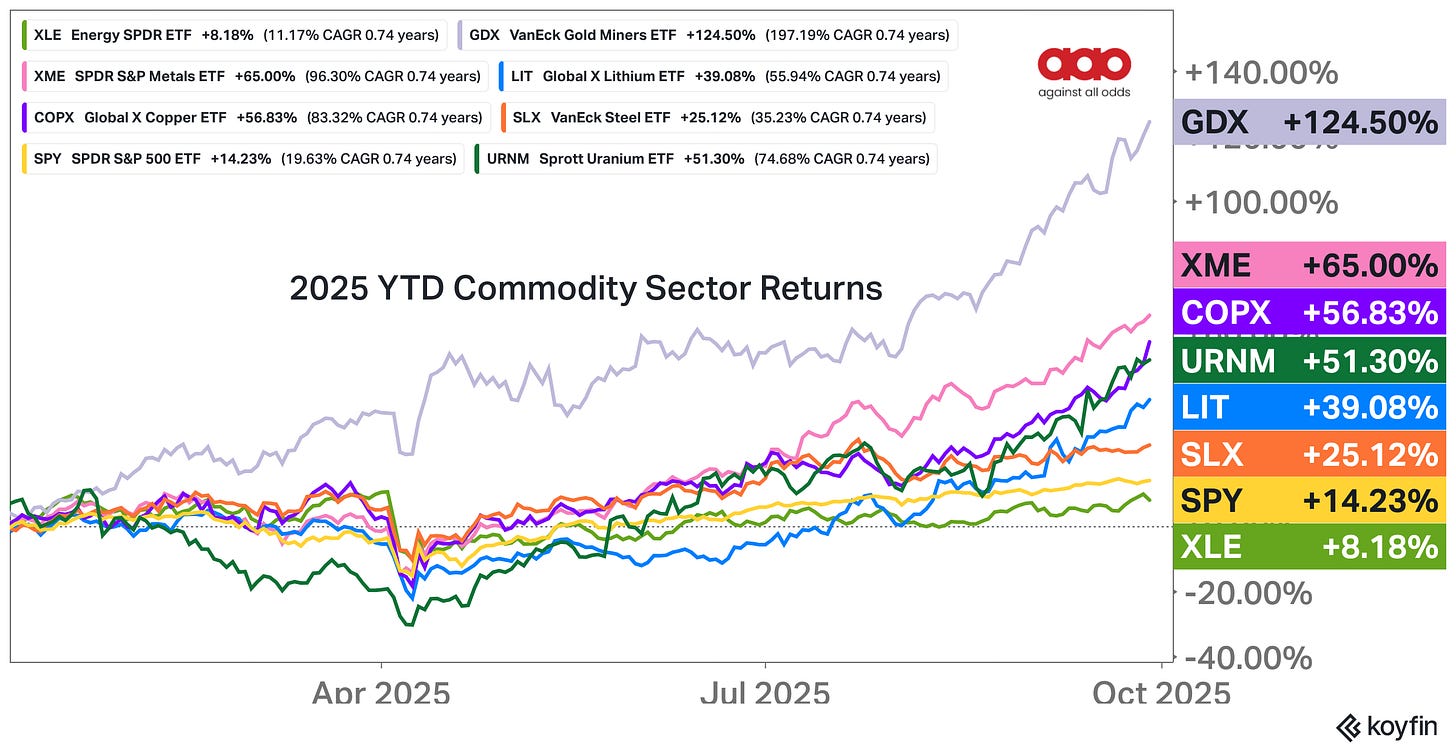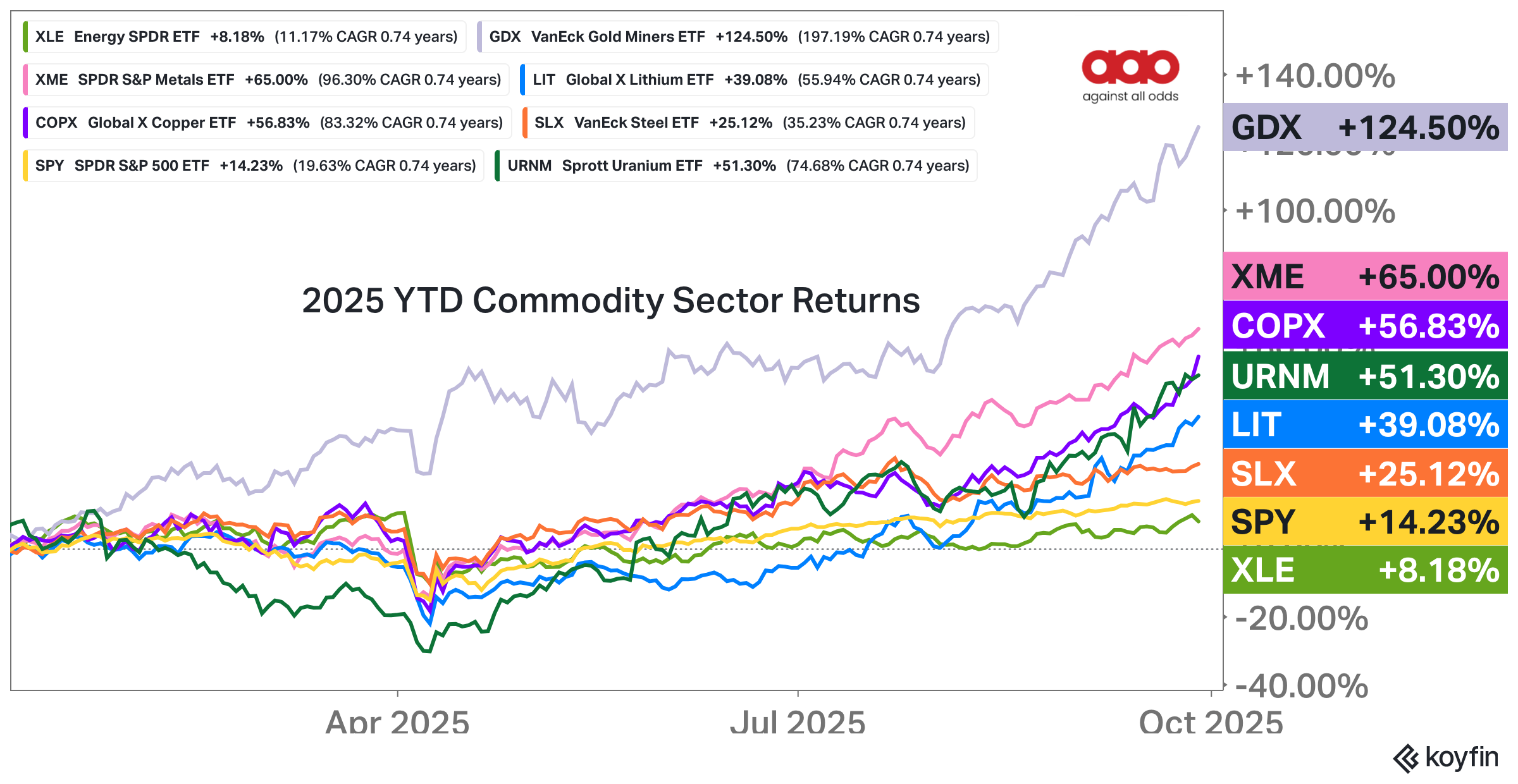 2) 2025 YTD Commodity Sector Returns (the squiggly lines)