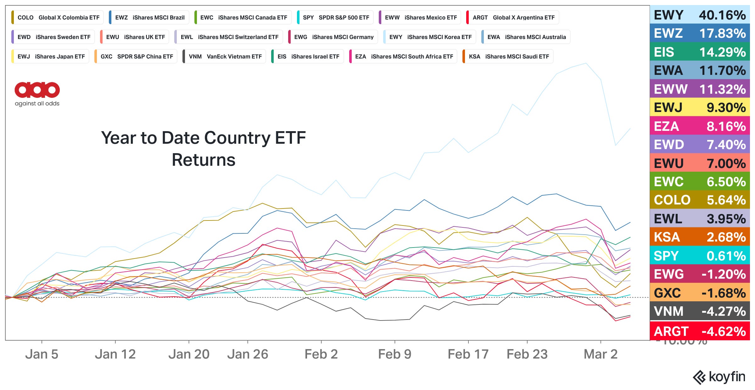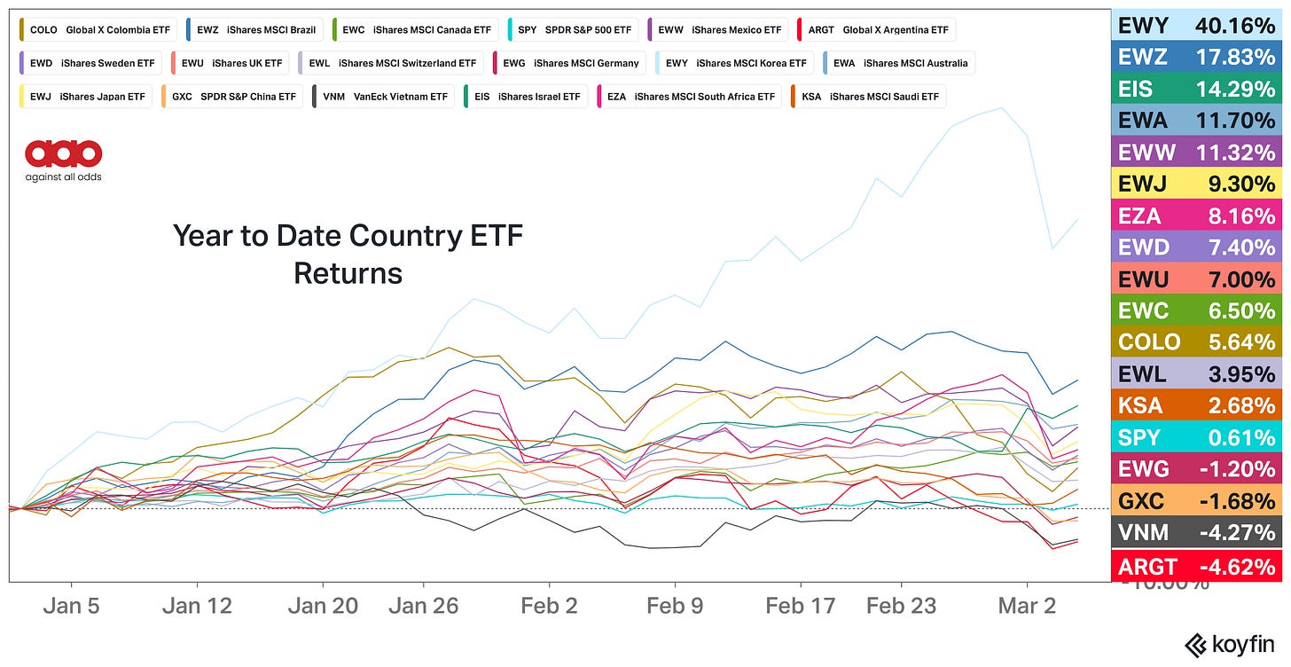 The countries outperforming this year are not the United States.