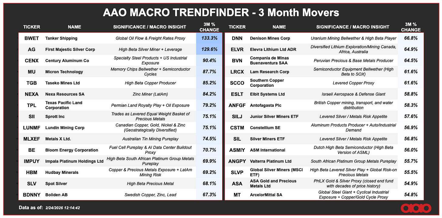 And when you look at the AAO Macro TrendFinder – 3 Month Movers, what do you see?