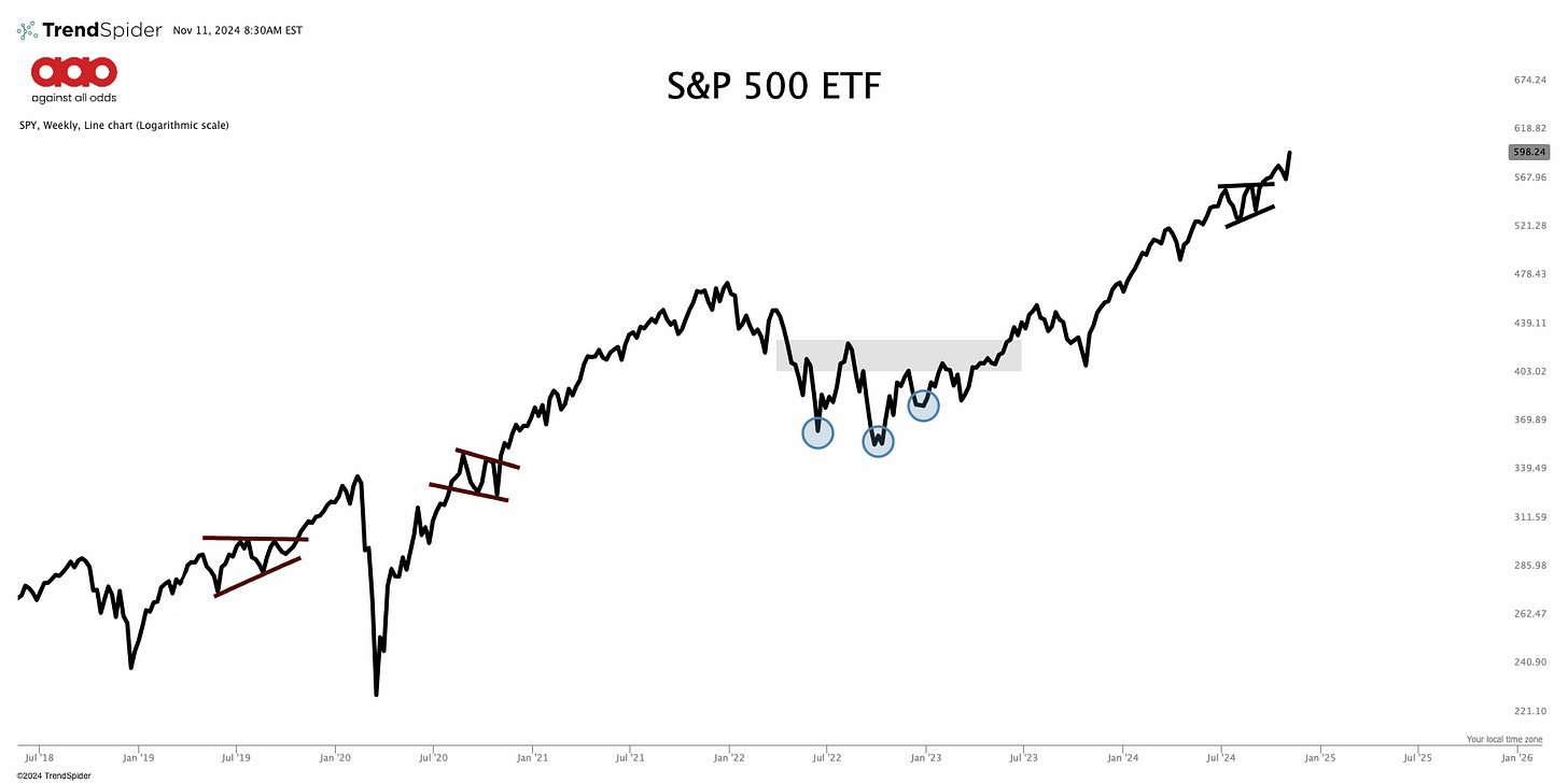 Don’t fade a trend that is this strong. The SPY ETF which is the broad index of 500 large cap stocks is moving higher and the trend is strong.